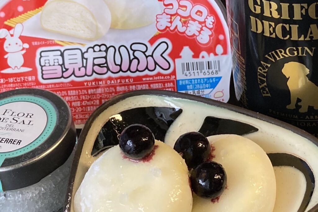 トップ画像は先日クローズ開催した試食会で大ウケだった番外編のお遊びメニュー「雪見だいふくオリーブオイルかけ」です。写真のとおりで記すこともないレシピですが、、、