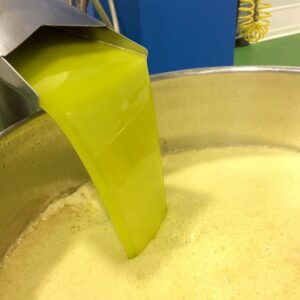 収穫したオリーブは、6時間以内に農園の敷地内にある最新機器を備えた搾油所にて、24℃以下の低温抽出で搾油され、温度管理が徹底されたステンレスタンクに保存します。それらの工程により、高品質の証である非常に低い酸度0.12%(2025年産)を実現しています。最新の搾油機を使い、ボトリング後も一つ一つを手にとり安全確認を徹底した品質管理を実現しています。物理的、機械的な処理のみで化学的な処理は一切なく、非加熱、空気と紫外線の完全遮断を実現し、より一層品質が高められています。へキサンによる化学抽出法は一切行っておりません。
